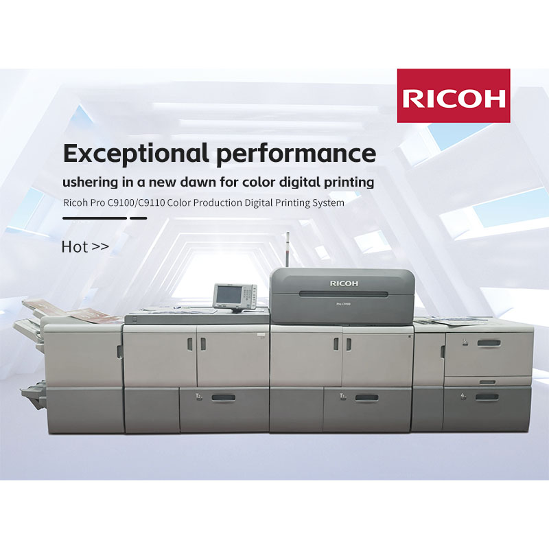 The Ricoh Pro C9100/C9110 is a new generation of heavy-duty production digital printing presses launched by Guangzhou Baolong Office Equipment Co., Ltd., designed specifically for the professional printing market. These two machines offer efficient, high-quality printing solutions for commercial printing, publishing, and packaging printing, thanks to their superior printing speed, high resolution, and wide media compatibility.